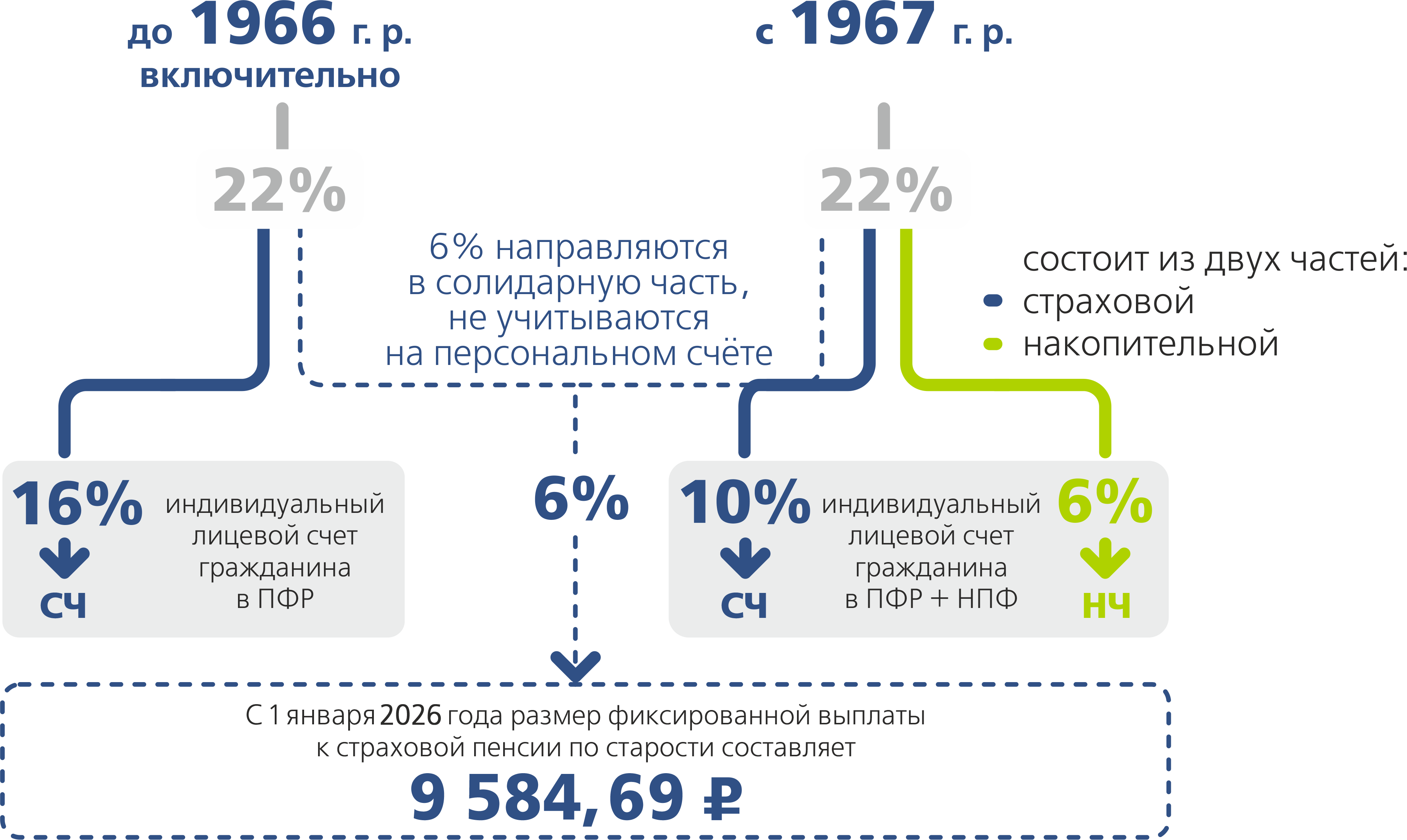 СП + 9 584,69 ₽ + НП = пенсия
